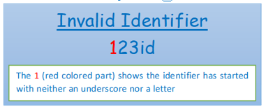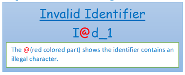 Sometimes the user input string can be a long one, particularly exceeding 31characters in length. In those cases, the string, although having all required syntax, will be considered as an invalid identifier. Example: RohanD_DebangshuK_SohamM_AbhirupSG